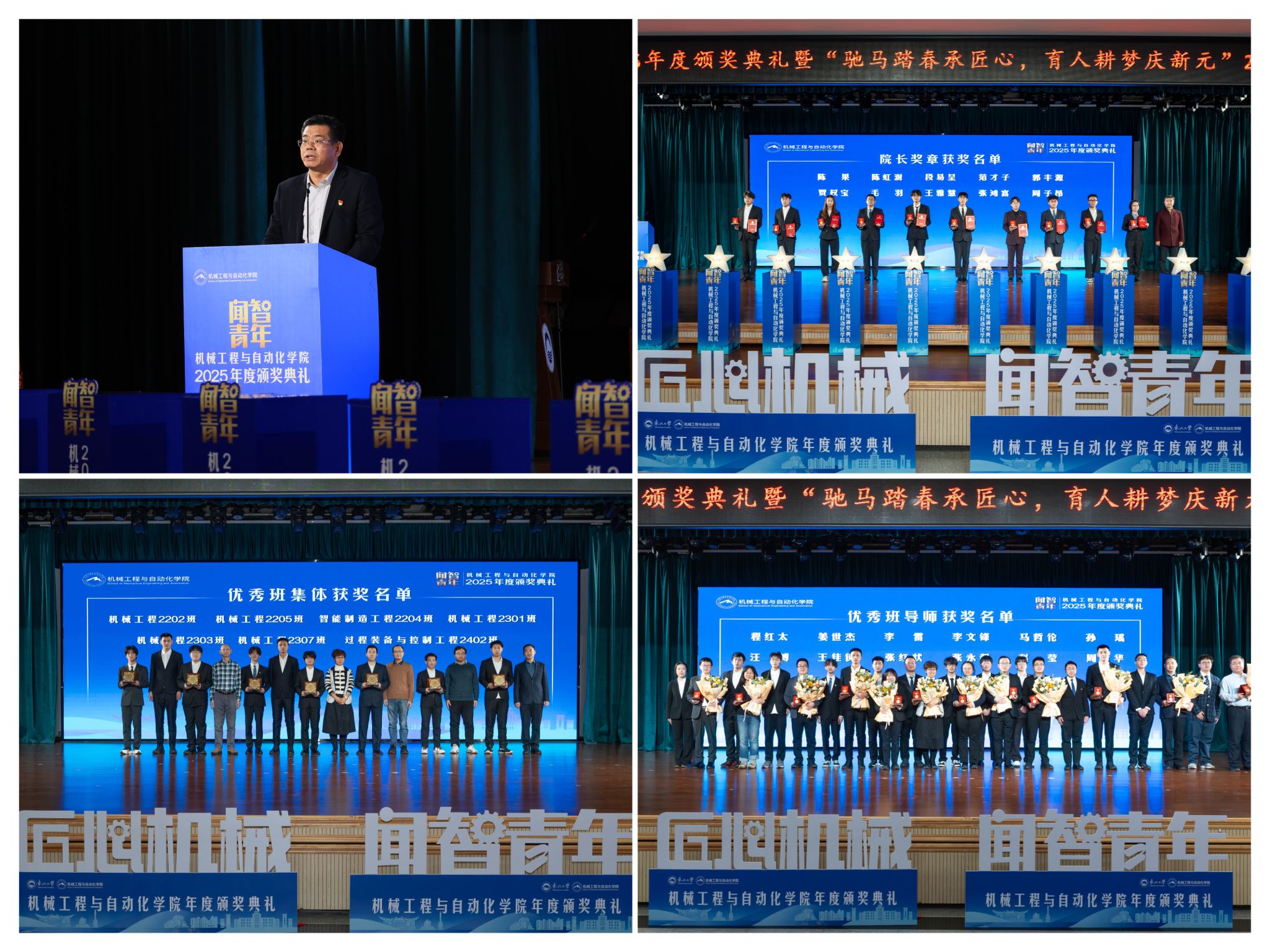 学院党委郝建山正在致辞中系统回首了一年来学院取得的主要成绩。学院积极办事国度计谋,投身深度金属矿智能开采纳配备全国沉点尝试室扶植,并正在环节科研范畴实现标记性冲破,获得国度严沉专项支撑。同时,学院成功引进增材取激光制制范畴领军团队,稳步推进学校新增学位点扶植,为久远成长奠基根本。学院学子表示凸起,研究生学术丰盛,正在“挑和杯”“中国国际大学生立异大赛”等多项赛事中斩获国度级项,结业生就业率持续连结高位,展示了全面成长的优良素养。郝建山阐释了“闻智青年”品牌的育人内涵,勉励全体师生胸怀“国之大者”,将小我成长融入“制制强国”计谋,过硬本事,怯于立异创制,勤奋成为担任平易近族回复大任的时代新人。副院长罗忠表扬决定。颁环节分三轮顺次进行。起首颁布的是“院长章”,刘云飞为毛羽等10名正在专业进修、科技立异、社会实践等方面表示杰出的学生颁布章。随后颁布“优良班集体”项,班导师代表为7个正在班风、最初,仪式聚焦育人一线论理学生代表向获评“优良班导师”的教员们献上鲜花取荣誉证书,表达诚挚感谢感动。“院长章”获得者代表毛羽连系科研竞赛取意愿办事履历,讲述了“道阻且长,行则将至”的成长;“优良班集体”获代表豆煜轩分享了班级凝心聚力、共建优秀学风的活泼经验。正在“闻智匠心 共话青蓝”出格环节,优良班导师马哲伦取所带班级学生代表刘定佳同台交换,从分歧视角展示了师生间思惟引领、学业互帮、讲授相长的温情互动,彰显了育人一线的深挚交谊取结实成效。据悉,“闻智青年”是机械工程取从动化学院出力打制的文化育人品牌。本次颁仪式既是年度的集中展现,也是典型树立、激励朝上进步的主要平台,旨正在指导全体学生以先辈为楷模,坚想、夯实专业根本、锻制立异能力,勤奋成长为具有家国情怀、全球视野取创制活力的杰出工程人才,为学校“双一流”扶植和高质量成长注入芳华力量。