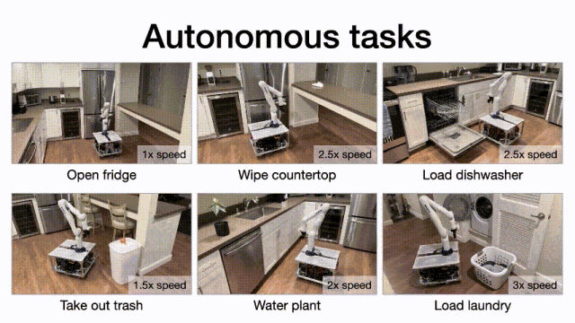 尝试的焦点目标正在于验证TidyBot++系统能否可以或许通过仿照进修机制,无效地习得并施行一系列家庭下的挪动操做使命。为此,研究人员通过近程节制收集了包罗打开冰箱、擦拭台面、扔垃圾、拆载洗衣机和浇水等六种常见家庭使命的演示数据。